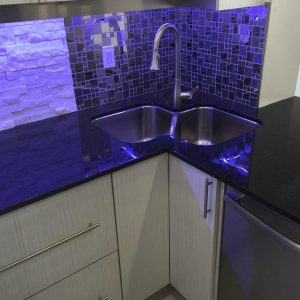 Stonework — countertops, backsplashes, and wall cladding in granite, quartz, and other materials